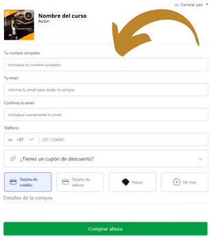 Además, seguido de esto encontrarás un botón para poder inscribirte, ahí te aparecerá el método de pago disponible en tu país y solo tienes que seguir los pasos, por favor no olvides de colocar bien tu correo ya que allí te llegará el acceso a la formación